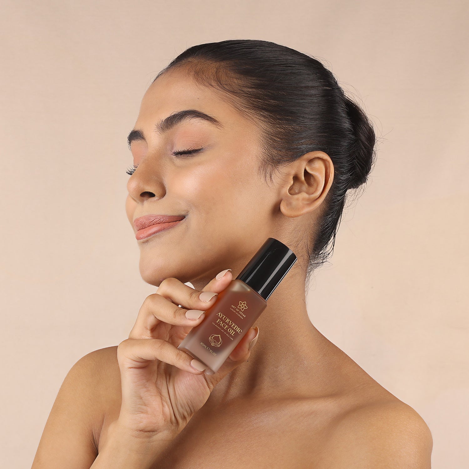Ayurvedic Face Oil, joka on rikastettu kasviuutteilla ja yrteillä, imeytyy syvälle raviten ja tukien ihosi luonnollista uudistumisprosessia. Se auttaa tasapainottamaan doshat (energeettiset voimat ayurvedassa) tuoden esiin ihosi terveimmän tilan, vähentäen epätasaisen sävyn, kuivuuden ja hienojen juonteiden näkyvyyttä.