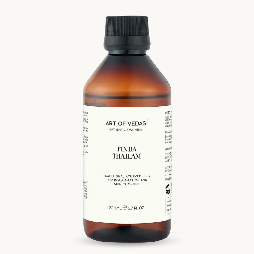 Unit price perPinda Thailam is a classical Ayurvedic formulation documented in Charaka Samhita and Ashtanga Hridayam. This distinctive cooling oil combines four key ingredients — Manjishta (Rubia cordifolia), Sariva (Hemidesmus indicus), Sarjarasa (Shorea robusta resin), and natural beeswax, processed in pure sesame oil.